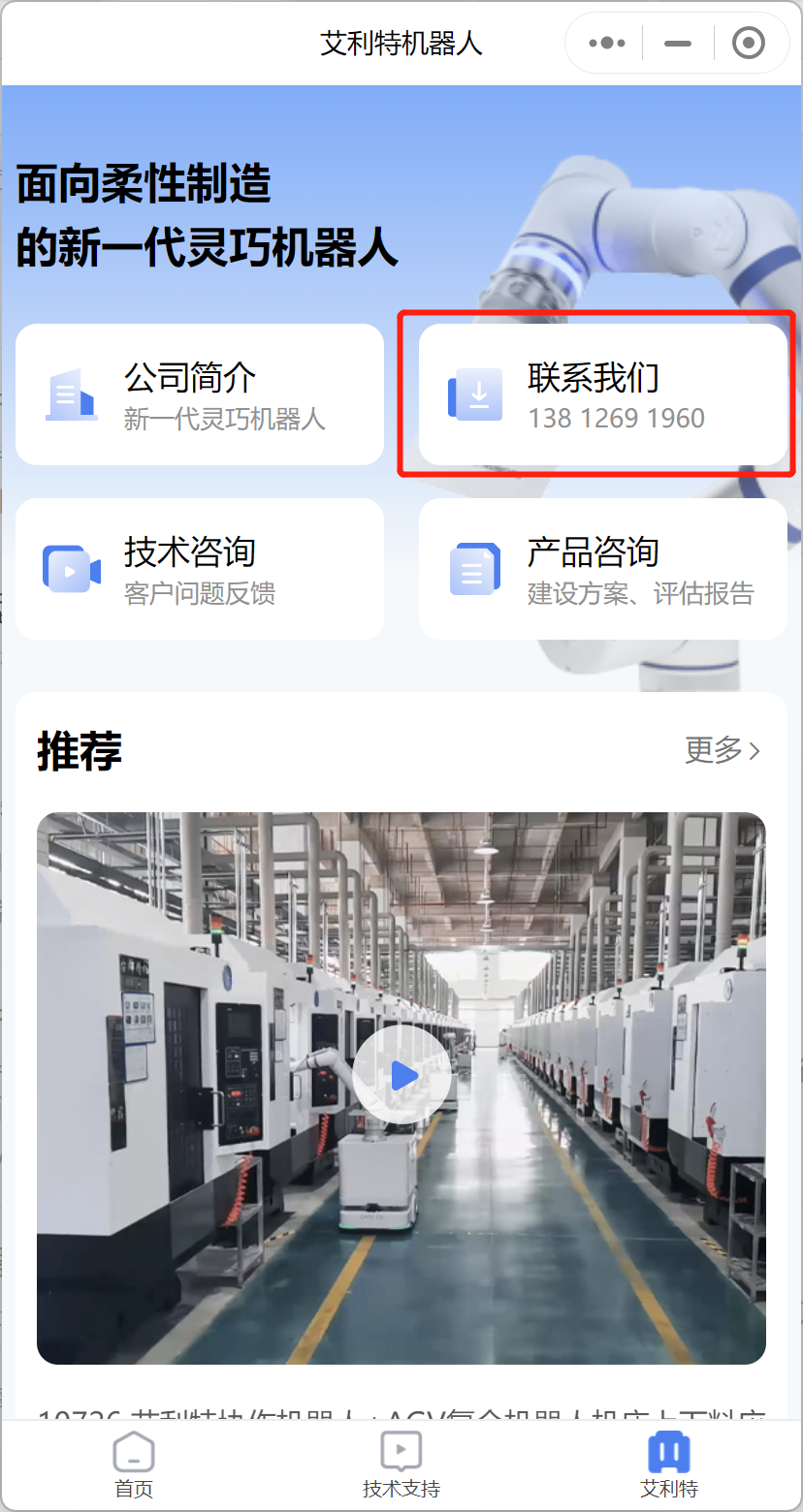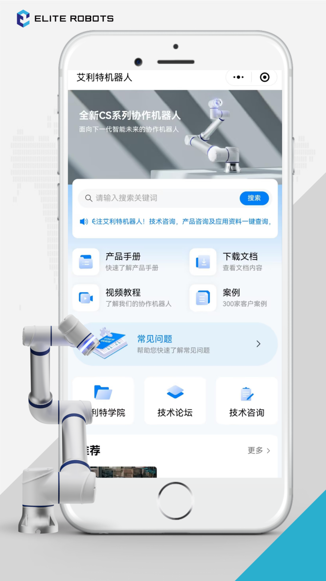 优化升级的“milan.米兰中国机器人”小程序,首页汇聚了产品手册、下载文档、视频教程、案例等专区板块,重点信息一目了然。