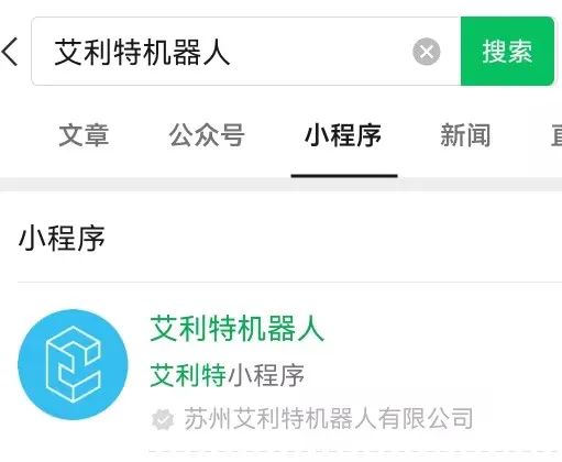 在微信主页面向下滑动屏幕,屏幕顶端会自动出现搜索栏,输入“milan.米兰中国机器人”并点击小程序,即可跳转至小程序首页。