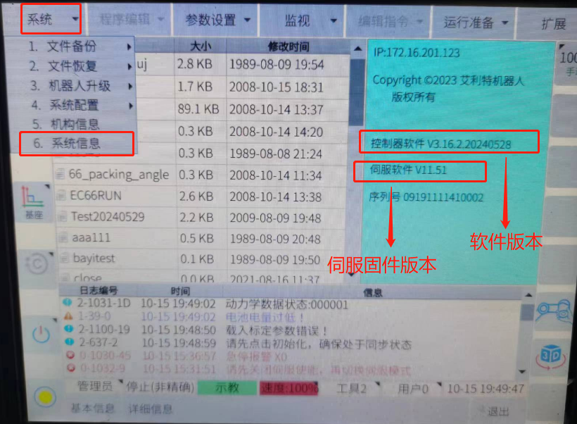 系统升级分为软件升级和固件升级:软件升级指的是升级机器人软件版本。
