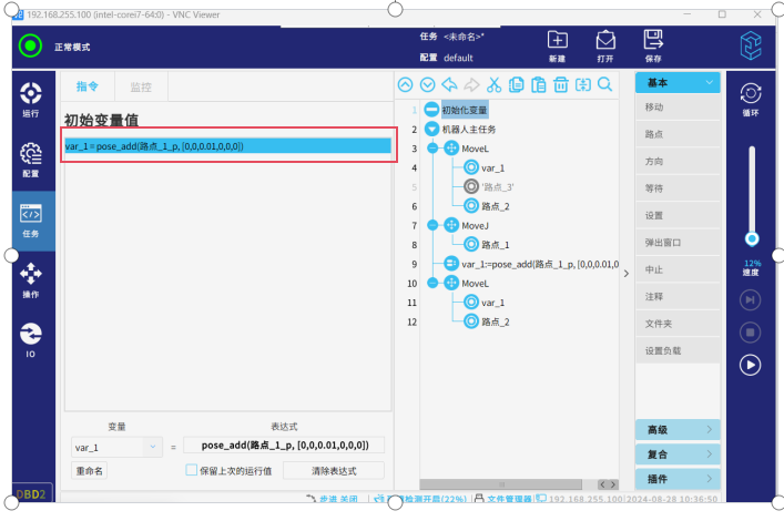 ● 变量路点、相对路点:由于此两种位置的路点没有固定的位置信息,所以此类型路点作为起始位置时,机器人会直接从当前位置开始运行任务,不会弹出手动运行到位置的页面,该逻辑可以实现可变起始安全位置的逻辑。(要注意的是使用变量路点做为起始位置时,要先在初始化变量里对该变量进行赋值,如图-2红框所示,如果不进行赋值就会出现报错)