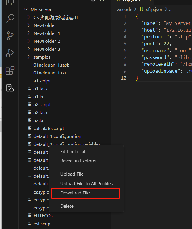 下载或者上传文件需保证当前文件夹下有创建的SFTP配置文件夹