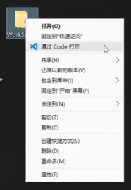 步骤:首先创建新文件夹命名WorkSpace – 右击文件夹选择通过code打开
