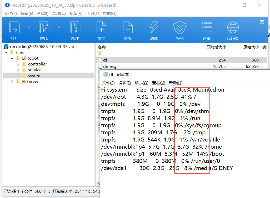 df  (系统硬盘挂载状态,用于排查是否存在系统硬盘占满等情况)