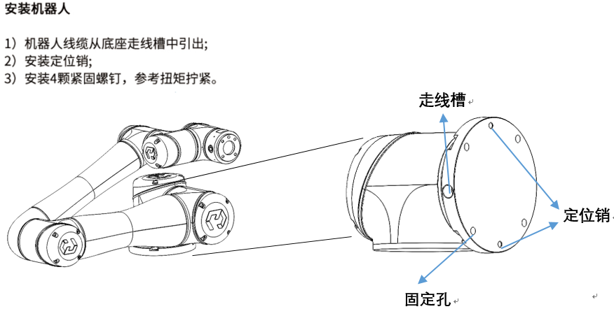 4.  如果没有使用正确的安装方式,拖动示教功能将无法正常工作,机器人可能会向无法预测的方向运动。