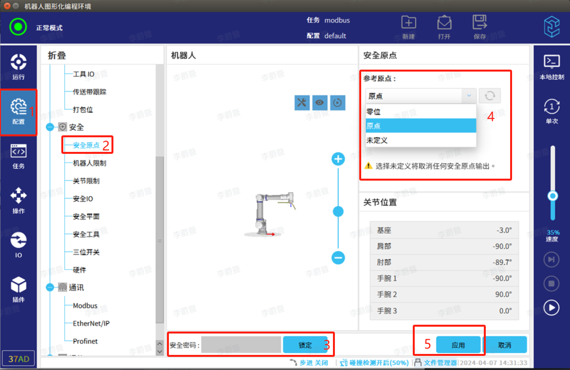 1.  IO输出信号配置安全原点信号输出(IO信号接线交互时建议使用)