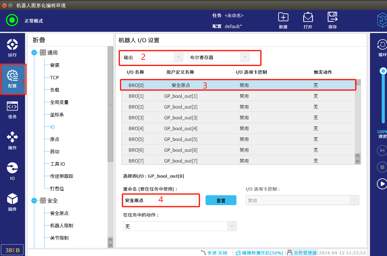 2 通过IO高级配置插件配置IO输出信号安全信号输出如图2-4所示: