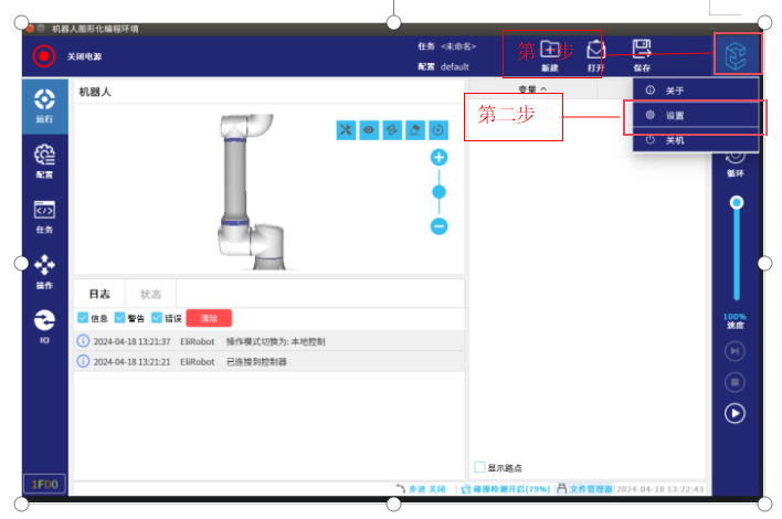 2.1.1.1将u盘插入示教器或者控制柜的USB接口,然后如图-1所示,点击milan.米兰中国 图标→设置,就会进入图-2界面。